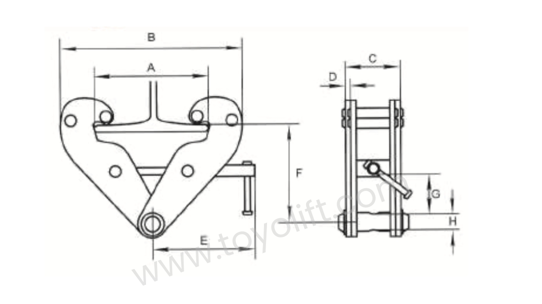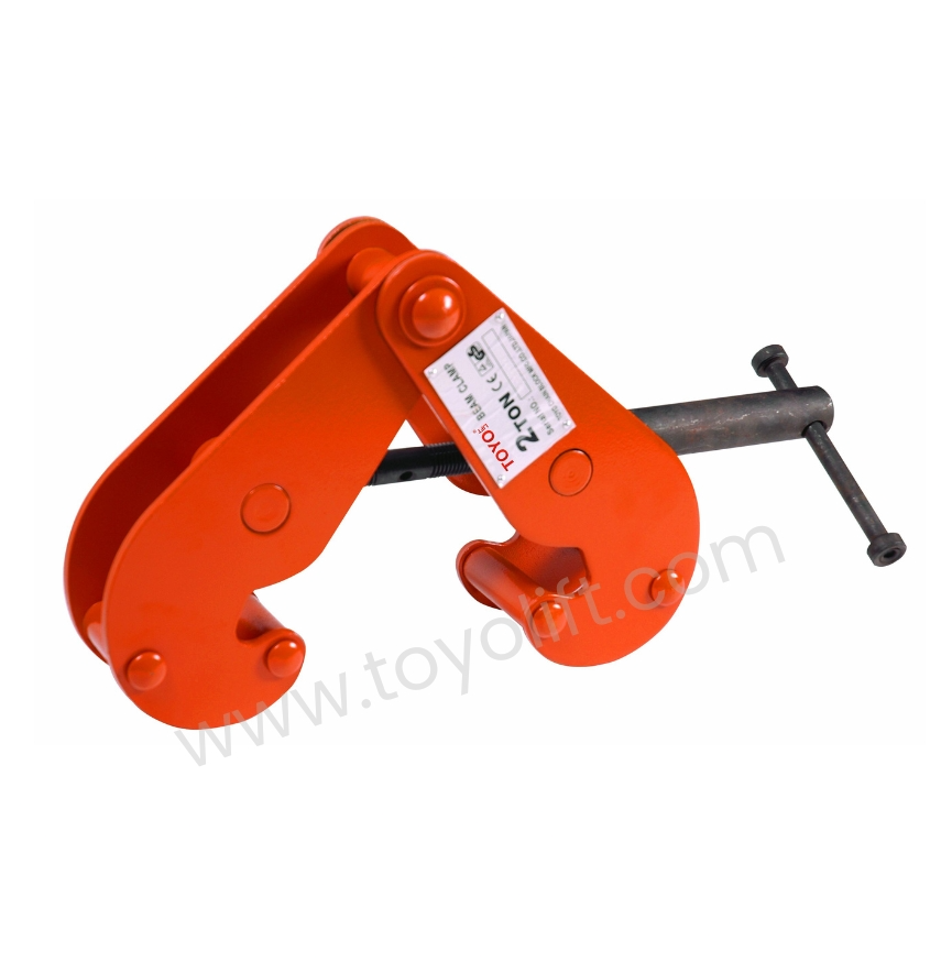 The TOYOLIFT Beam Clamp models range in rated load capacity from 1 Ton up to 10 Ton (Model TL-BC100).