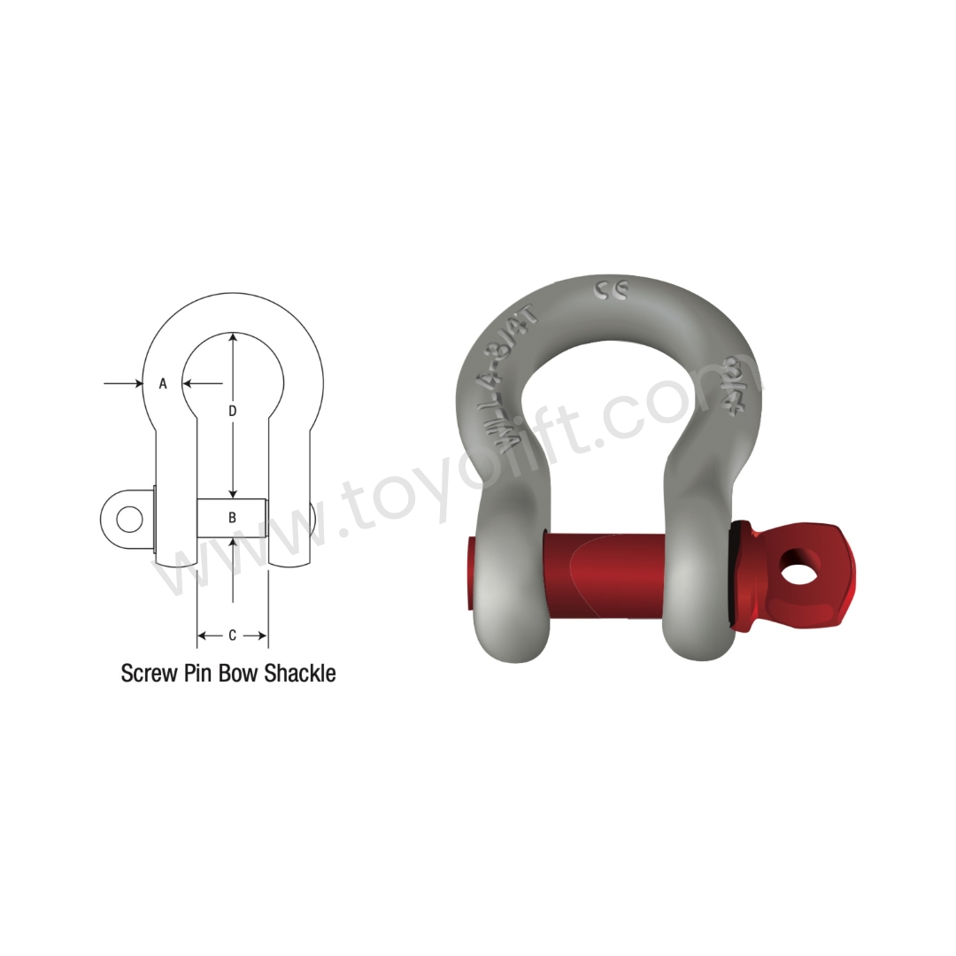 The Screw Pin Bow Shackle, designated TL-209, is a specialized type of TOYOLIFT rigging hardware. These components, categorized as alloy shackles, are engineered to establish a secure and robust connection point for lifting and rigging endeavors. They employ a bow shape and a safety pin mechanism to ensure their reliability and durability.